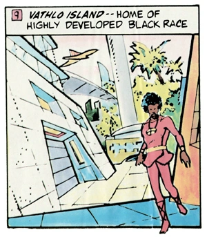 Vathlo es una isla-continente de Krypton similar a Australia y poblada por una "raza negra altamente desarrollada" de Kryptonianos, y "conservado su independencia a lo largo de la historia y no se unió a la federación planetaria, aunque se mantuvieron las buenas relaciones”. Los Kryptonianos negros fueron mostrados por primera vez en Superman # 234, con la isla en sí mostrándose en un mapa en el # 239. Vathlo fue rara vez o nunca referenciado más allá de estas pocas publicaciones, aunque un kryptoniano negro llamado "Iph-Ro de Vathlo" apareció nuevamente en Superman : The Man of Steel # 111. Una referencia de improviso a la isla se hizo en la historia de Alan Moore Para el hombre que tiene todo, donde "el problema racial con los inmigrantes de la Isla Vathlo", se menciona en un Krypton de ensueño que había evitado la destrucción. Se cree, en base a las apariciones recientes de kryptonianos negros en los últimos números de Superman, que los Vathlonianos finalmente se integraron en Krypton de forma adecuada.